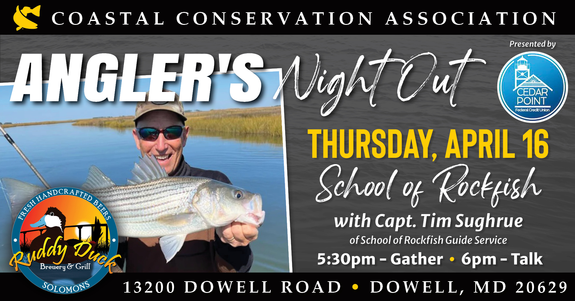 CCA Maryland’s Central Region Chapter invites you to our annual Fundraising Banquet on Saturday, April 11, 2026! Join fellow anglers, conservationists, and friends for an evening featuring great food, drinks, auctions, and raffles in support of local habitat projects and fisheries conservation.