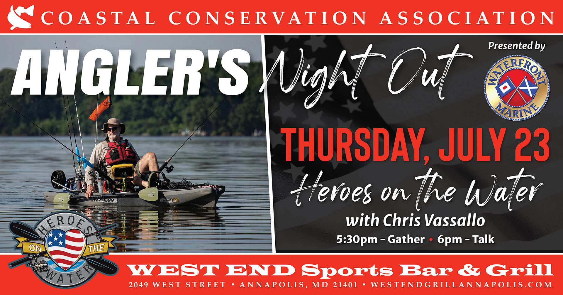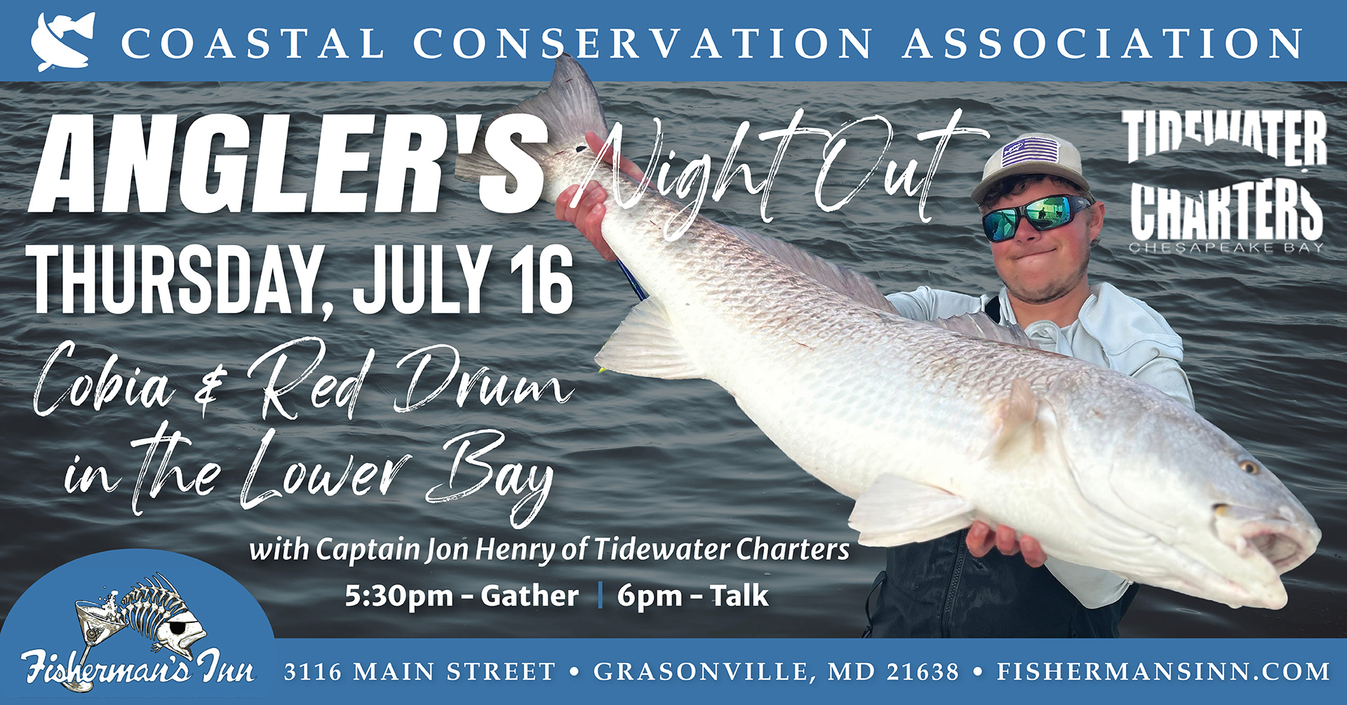 Join the CCA Maryland Kent Narrows Chapter for another installment of our popular Angler’s Night Out series on Thursday, July 16, 2026, at Fisherman’s Inn on Kent Island. We’re excited...