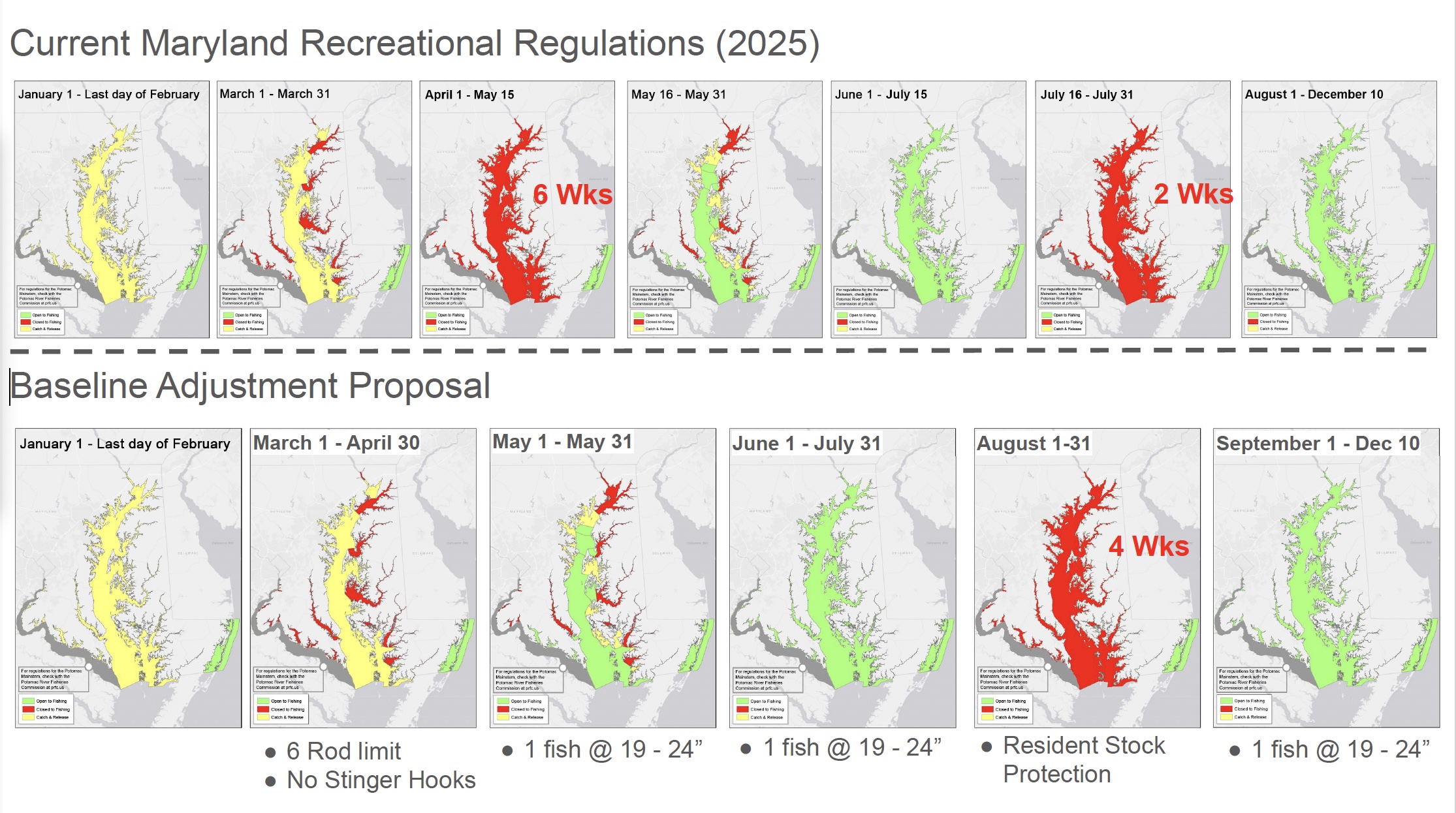 The Maryland DNR is seeking input on regulations that would reset the season baseline for striped bass fishing in 2026.